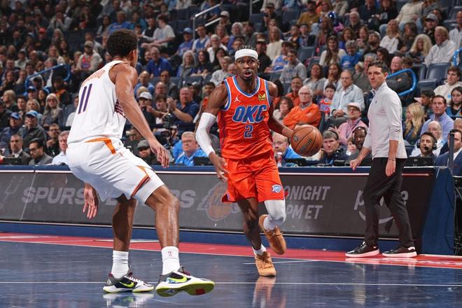 次节比赛,雷霆连续两节单节轰下35+得分,且连续两节限制太阳单节不超过25分。雷霆率先连得5分扩大20分优势,太阳一波11-2攻势追到差11分,雷霆继续扩大优势,但之后被追到54-42领先。雷霆在亚历山大与杰伦引领下,打出一波20-6攻势瞬间拉开比分,雷霆单节36-25净胜11分,上半场结束雷霆扩大74-48领先太阳26分优势。前两节比赛,雷霆43中26超过6成准星,其中三分19中13接近7成准,亚历山大17+6、霍姆格伦13+5与杰伦11+4+3;太阳46中18不足4成准星,其中三分15中7,狄龙14分。